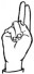 На ћирилици написано ДРИНКА РАДОВИЋ састоји се из 13 слова [?]. Исписано ћириличном једноручном азбуком за глувонеме: